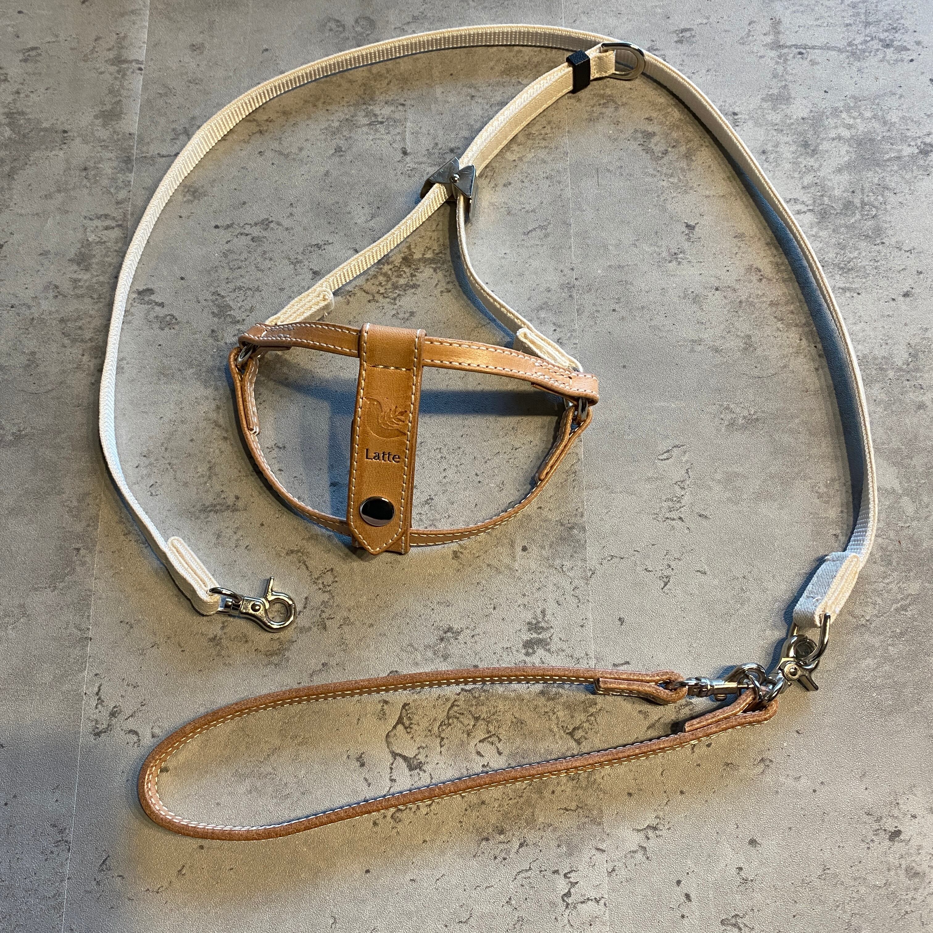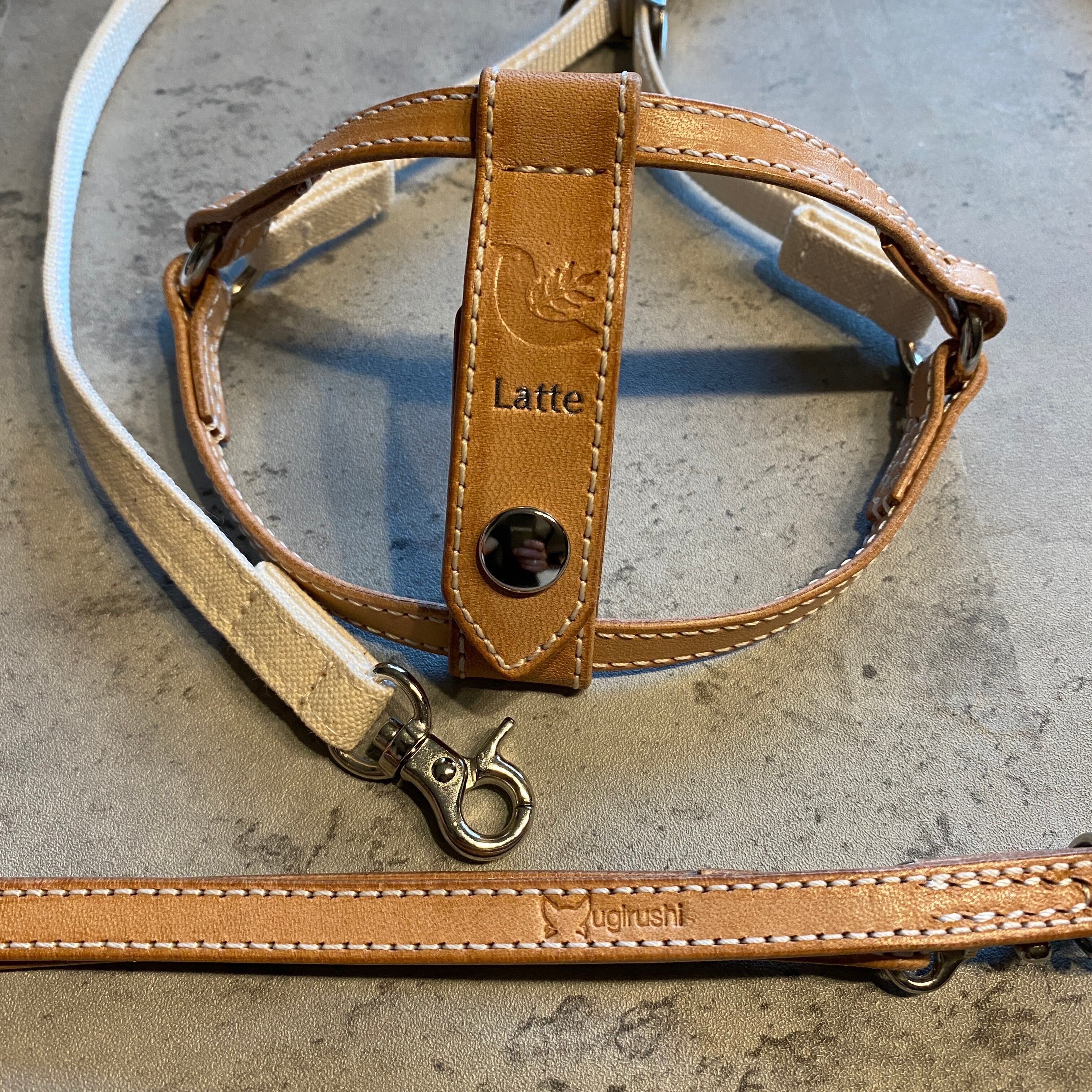 ハイブリッドハーネス XXSサイズ 倉敷帆布+ヌメ(ナチュラル)レザー 名前箔押し